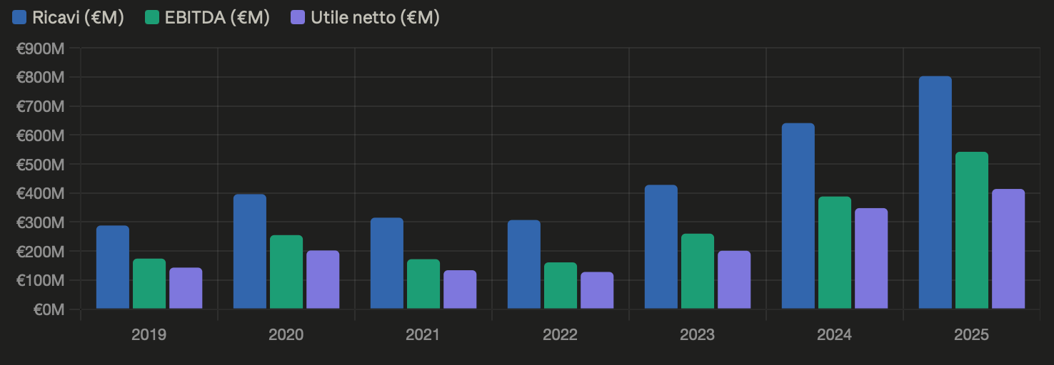 Ricavi (€M) | €427.7M | €641.4M | €803.0M |