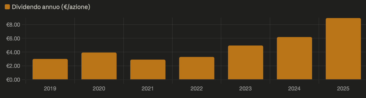 Dividendo per azione (€) | €3.10 | €4.36 | €7.50 | €8.94 |